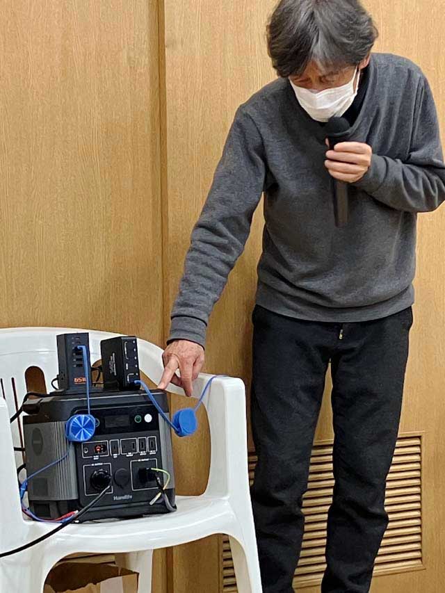 そこで今年は、「在宅避難生活のトイレ、電気、備蓄、安否確認」をテーマに開催。当日は、講師から災害時の避難所や自宅でのトイレ事情の実態を学んだり、参加者同士のグループワークで意見交換を行いました。そのほかにも、蓄電池の使用方法の説明や備蓄品の展示も実施。恒例の防災ビンゴゲームでは大いに盛り上がりました。