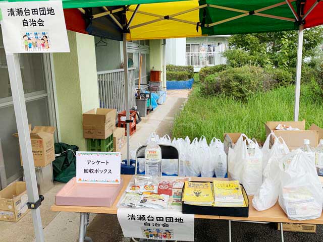 清瀬台田団地自治会では、住民が高齢化し、家にこもりがちになる傾向が見られていました。そこで、住民のみなさんの関心が高い防災をテーマに、在宅避難のための防災ミニ展示会を開催し、新しい関係性を作る機会をつくることにしました。