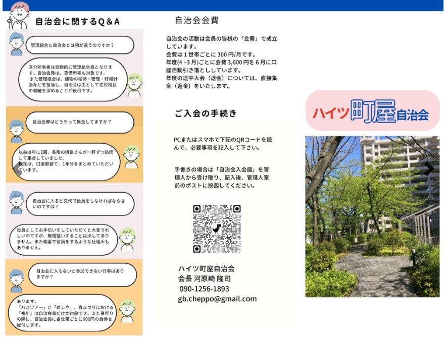 ハイツ町屋自治会:「自治会入会案内(パンフレット)の作成」