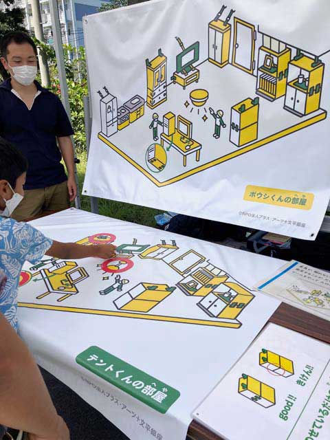 「やさしい日本語」での開催チラシの作成や、団地内の防災無線でのネパール語・中国語・日本語での案内放送、地域の日本語教室と連携した周知等を行った結果、100名以上の外国人を含む約200名が参加しました。当日は、携帯トイレの使い方について実物を使って説明したり、イラストを用いた家具転倒防止に関するゲームを行うなど、子どもや外国人でもわかりやすく楽しめる企画を実施しました。