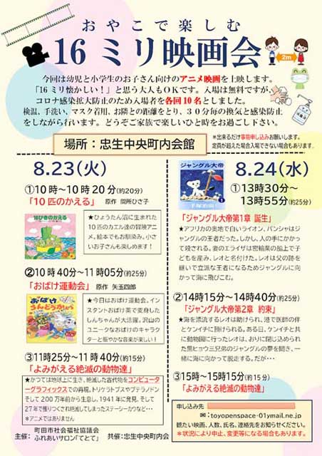 忠生中央町内会:夏休み子ども16ミリ映画会での運営お手伝い